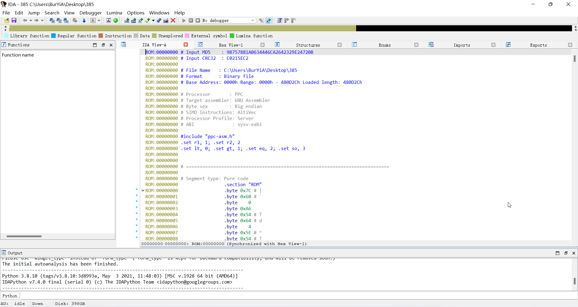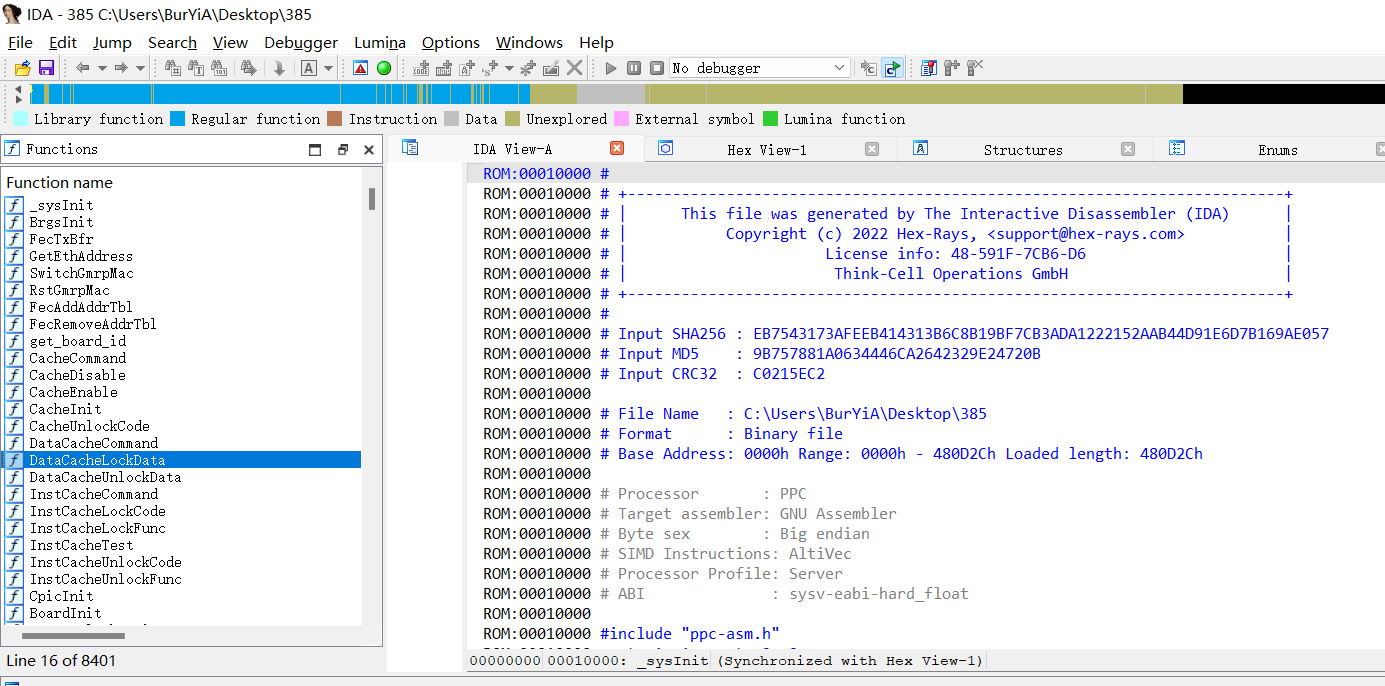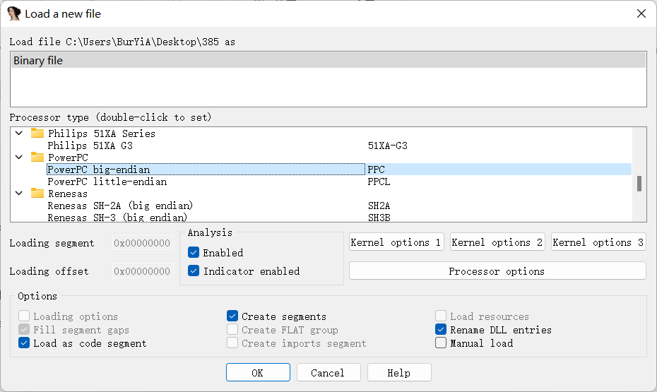ida32打开固件进行分析,选择ppc架构