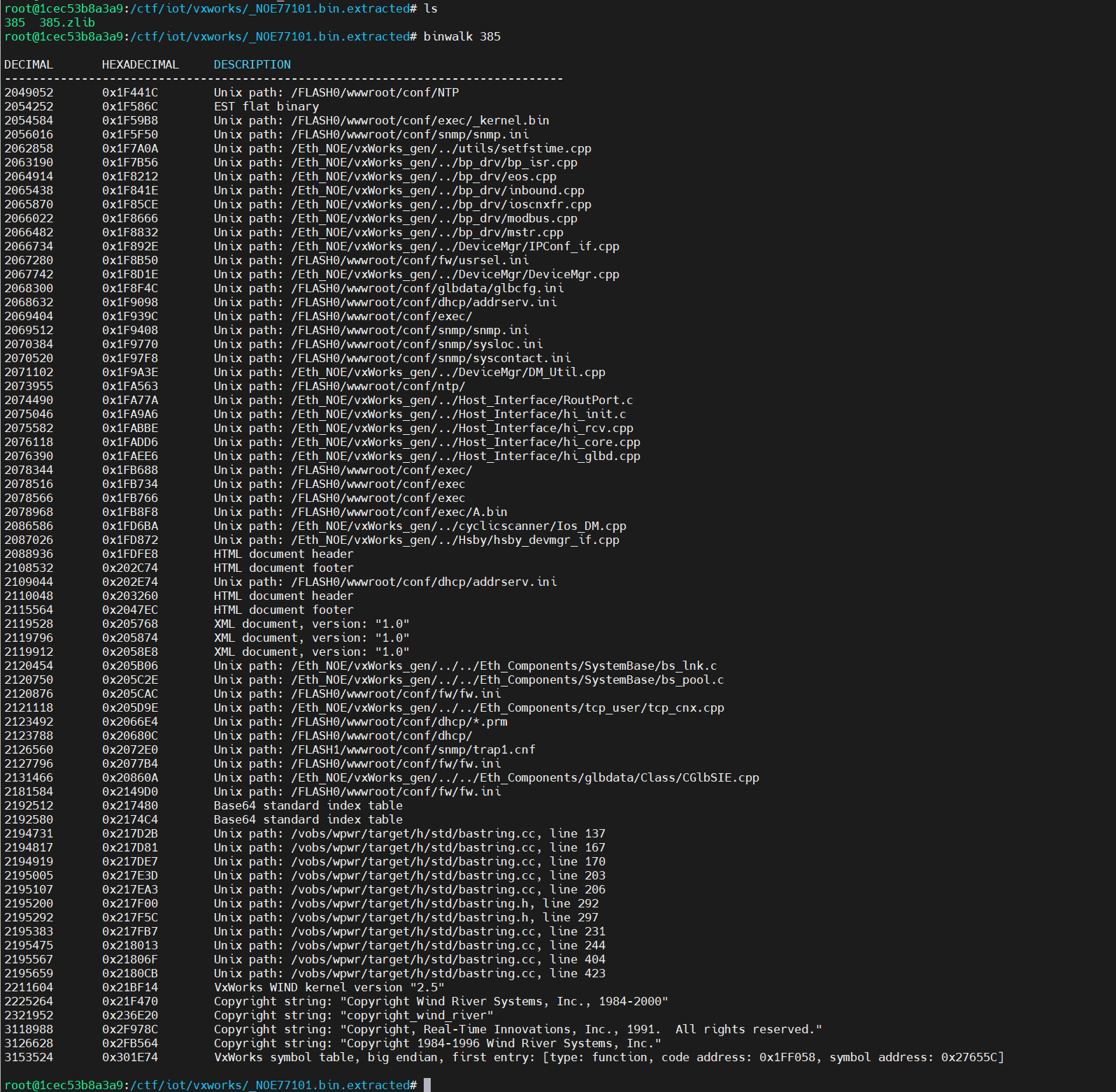 在末尾也可以看到使用的VxWorks的内核版本为2.5,并且自带了符号表