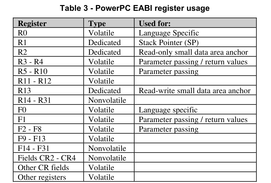 r1寄存器为ppc中的栈寄存器,r3则是参数寄存器